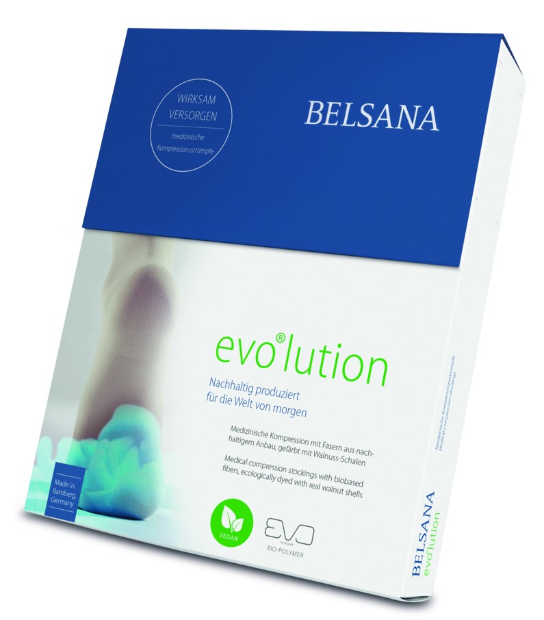 Reichen medizinische Wirksamkeit und hoher Tragekomfort für einen Kompressionsstrumpf der Zukunft? Die Weltneuheit BELSANA evo®lution beweist: Es geht noch mehr! Der innovative Strumpf wird ressourcenschonend und ohne tierische Materialien produziert, ökologisch gefärbt und ist umweltschonend verpackt. Das Ergebnis: ein nachhaltig produzierter und veganer Kniestrumpf der Kompressionsklasse 2. Venenpatienten finden den verschreibungsfähigen medizinischen Kompressionsstrumpf ab sofort in ihrer Apotheke.