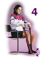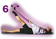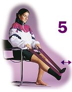 Mit ausgestrecktem Fuß mehrmals kreisen. Durch den Zug am rechten oder linken Band