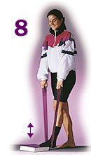 Fuß etwa 30 cm vor dem Stuhl auf der Ferse aufsetzen. Vorfuß hochziehen,