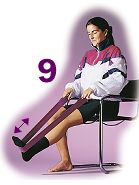 Auf dem Stuhl sitzend gegen den Zug der Bänder Pendelbewegungen im Kniegelenk